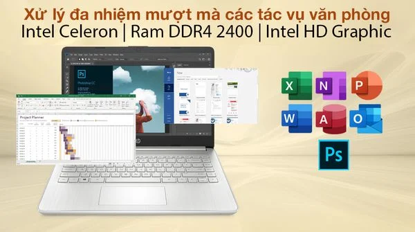 Bộ CPU Intel Celeron cho phép chiếc laptop HP tròn vai với các tác vụ cơ bản hằng ngày của bạn như lướt web, nghe nhạc, xem phim,… và làm việc trên các ứng dụng Office như Word, Excel, Powerpoint,… một cách trơn tru.